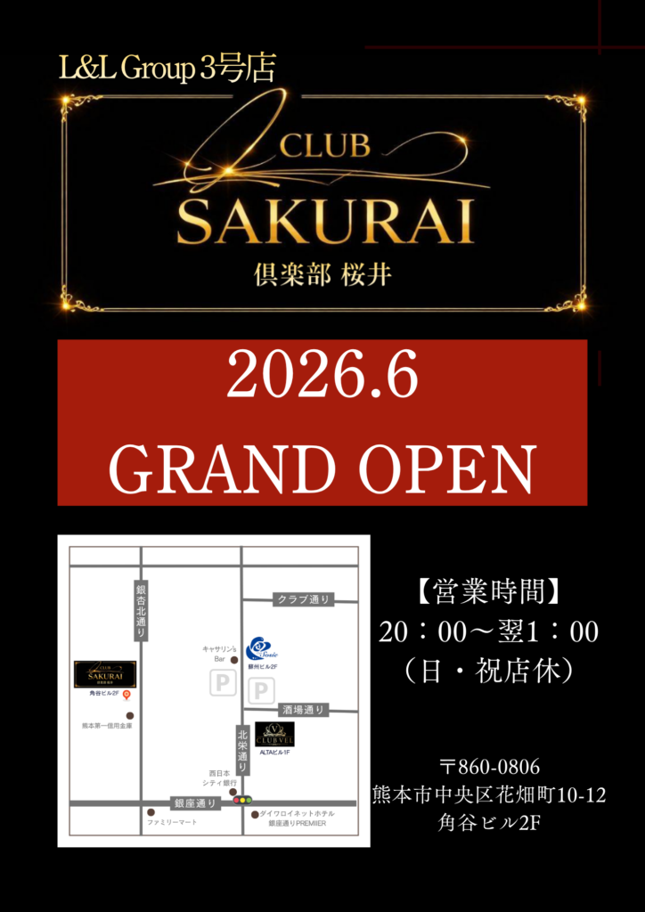 このたび新店【倶楽部 桜井】をオープンする運びとなりました!!